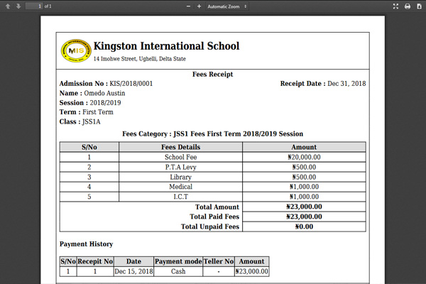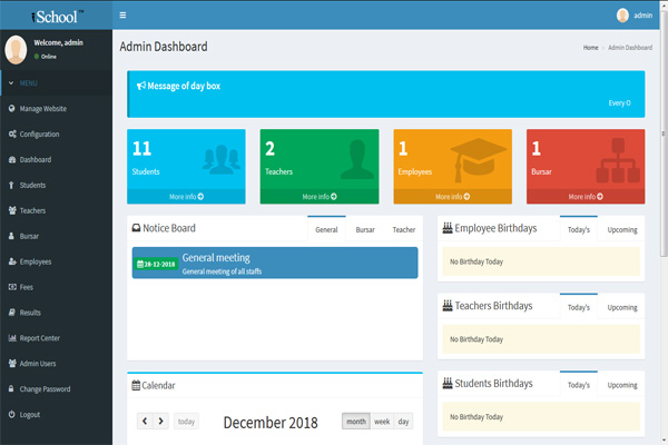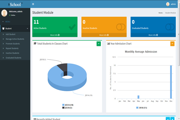 iSchool is a robust & responsive school management system that can be used to automate various processes in secondary schools. Core functions include student registrations, staff registration, automated result computation & checking, fees payment and much more